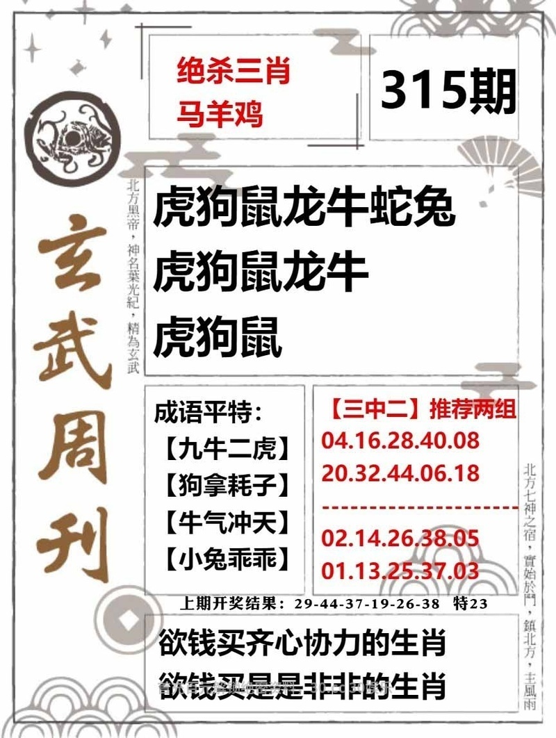 311期⑨肖鸡虎牛马狗兔鼠猴开:蛇37