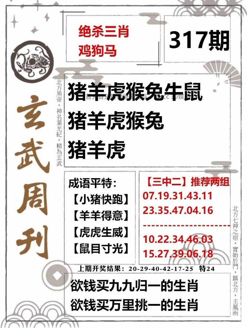 317期⑨肖猴龙猪牛马虎鸡羊开:鼠18
