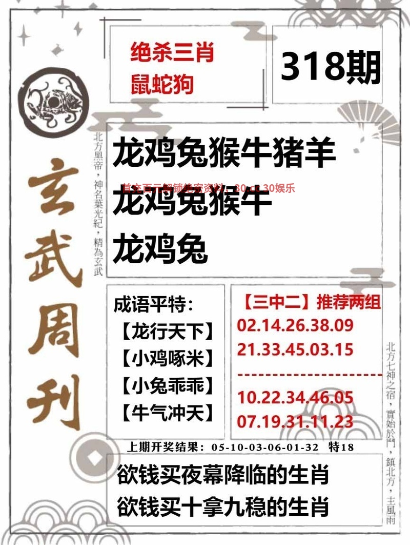 318期:稳杀二肖【虎鸡】开:鼠06中